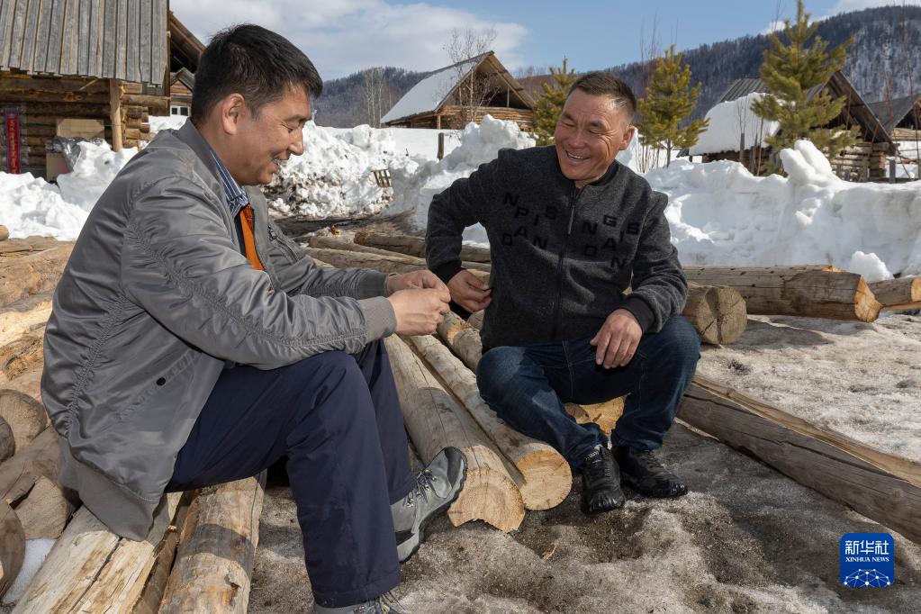 3月30日,蘇卡(左)向村民孟格得叮囑房屋改造的相關(guān)規定。