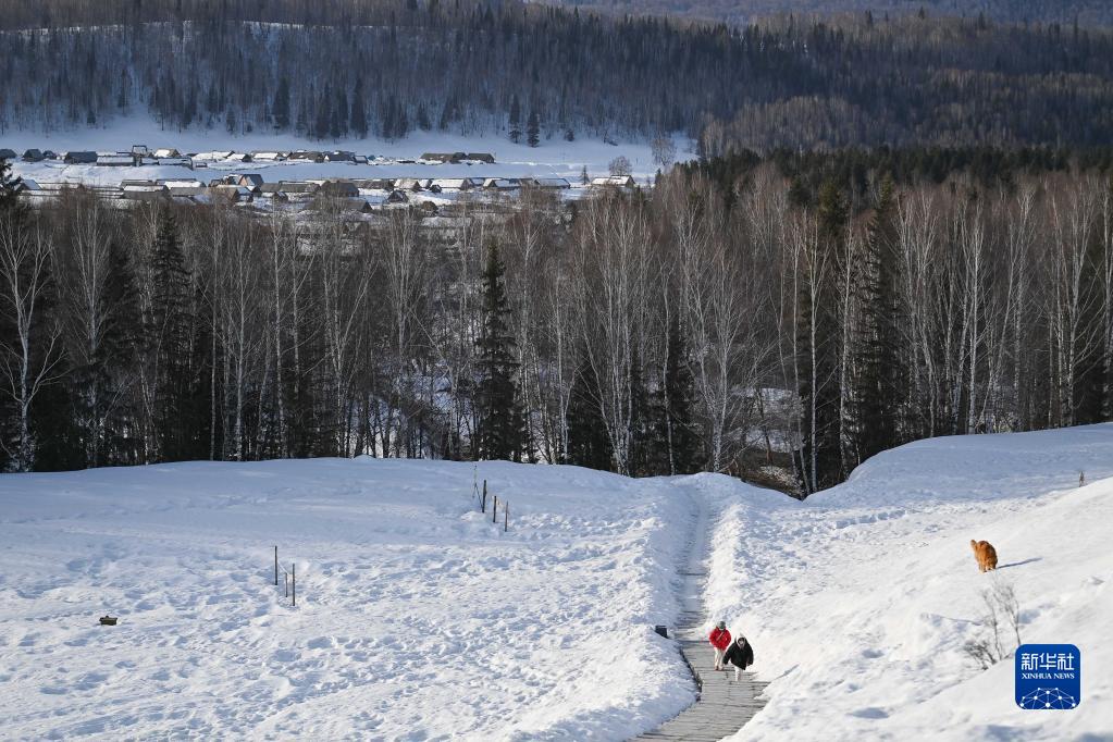 3月30日清晨,游客前往禾木村后山的觀(guān)景平臺。