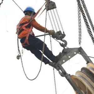 當日,在福建漳州核電500千伏送出工程施工現場(chǎng),施工人員在橫跨1500米的漳江跨越線(xiàn)路百米上空進(jìn)行四回線(xiàn)路同時(shí)跨江作業(yè),全力推進(jìn)工程進(jìn)度。