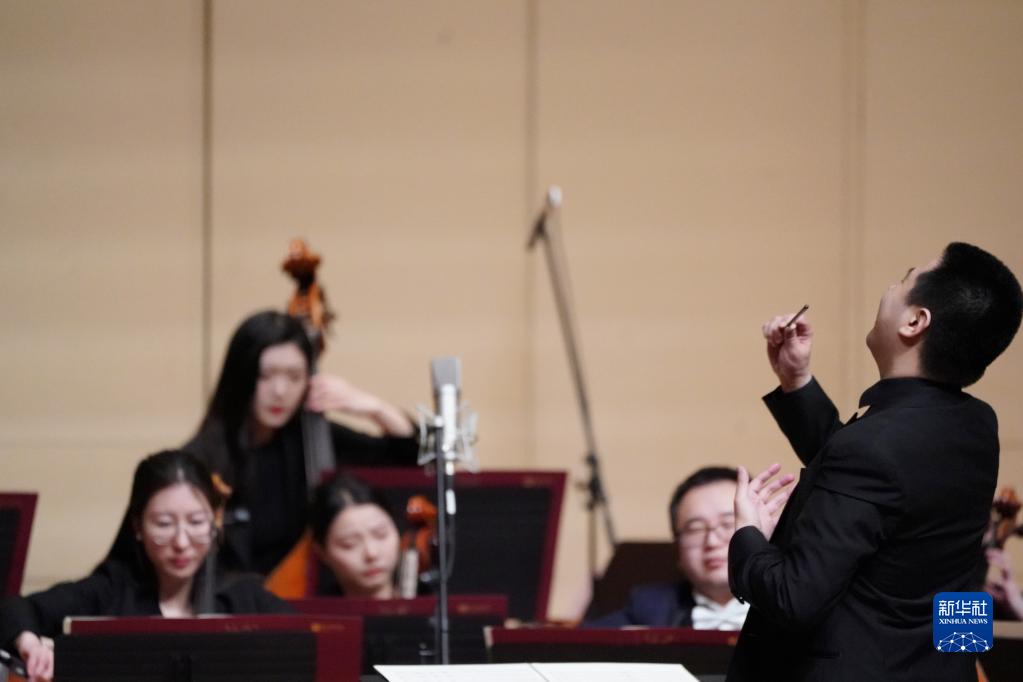 3月31日,中央音樂(lè )學(xué)院交響樂(lè )團的演員在演奏。