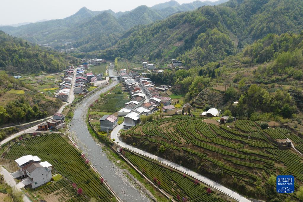 安康市漢濱區大竹園鎮茶園景色(3月31日攝,無(wú)人機照片)。