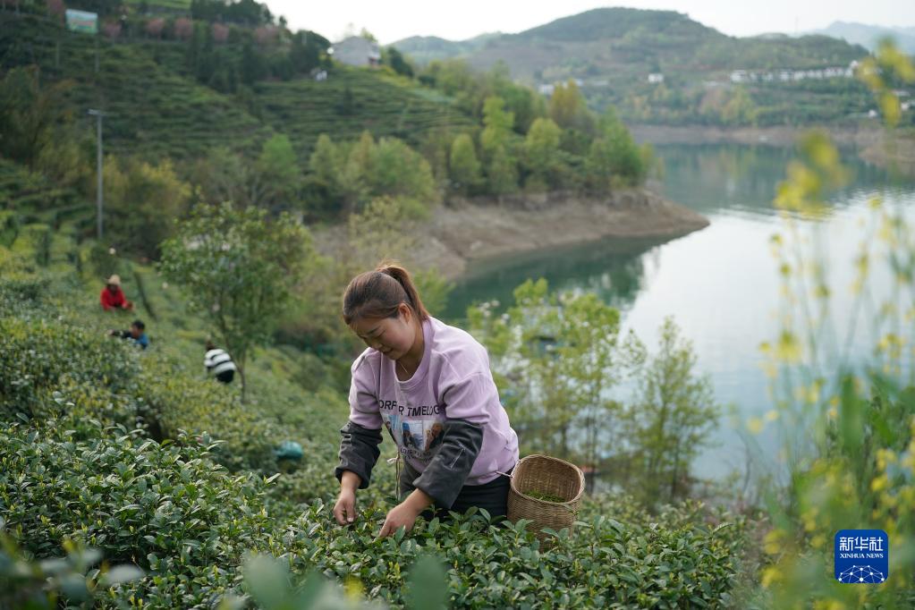 3月31日,安康市漢濱區流水鎮茶農在茶園內采茶。