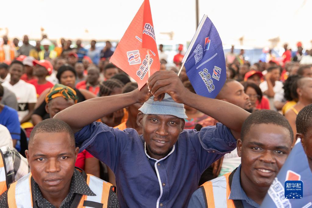 3月24日,在贊比亞南方省,中國電力建設集團有限公司的贊比亞員工參加下凱富峽水電站5號機組發(fā)電儀式。