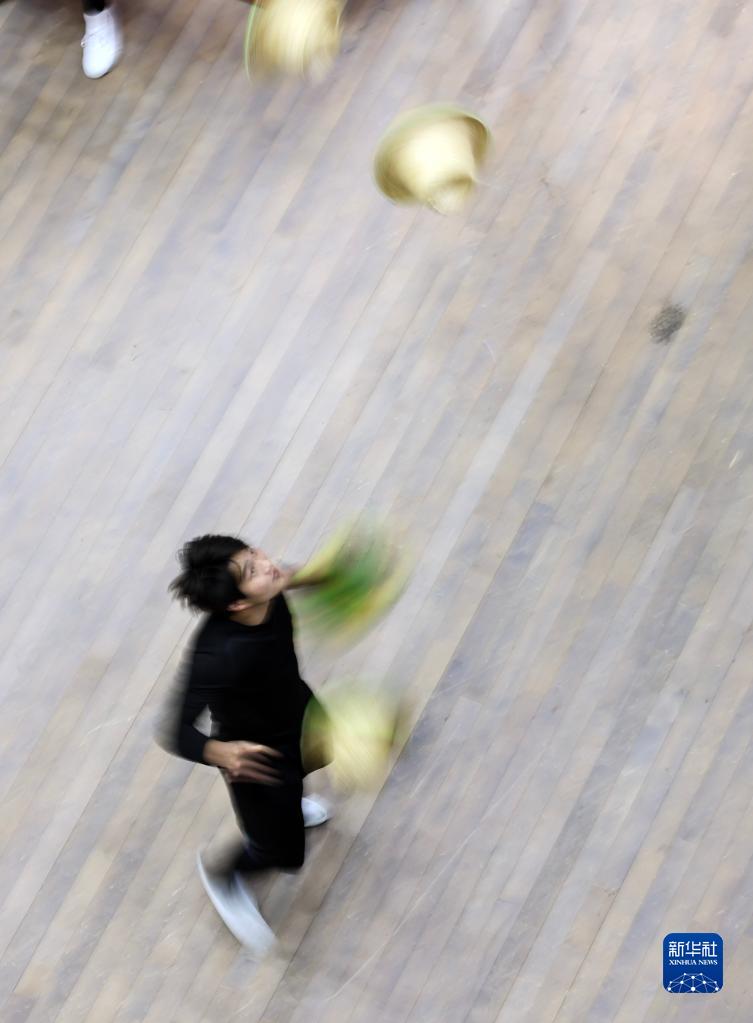 3月31日,演員在位于江蘇省鹽城市建湖縣的江蘇省雜技團訓練。
