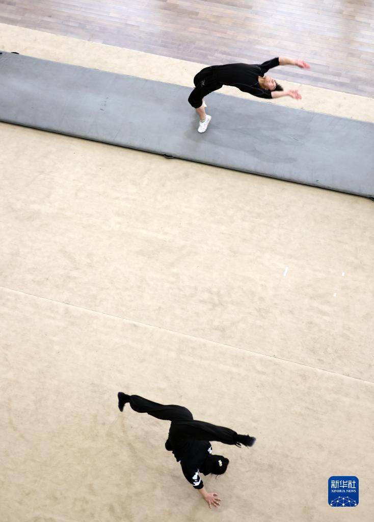 3月31日,演員們在位于江蘇省鹽城市建湖縣的江蘇省雜技團訓練。
