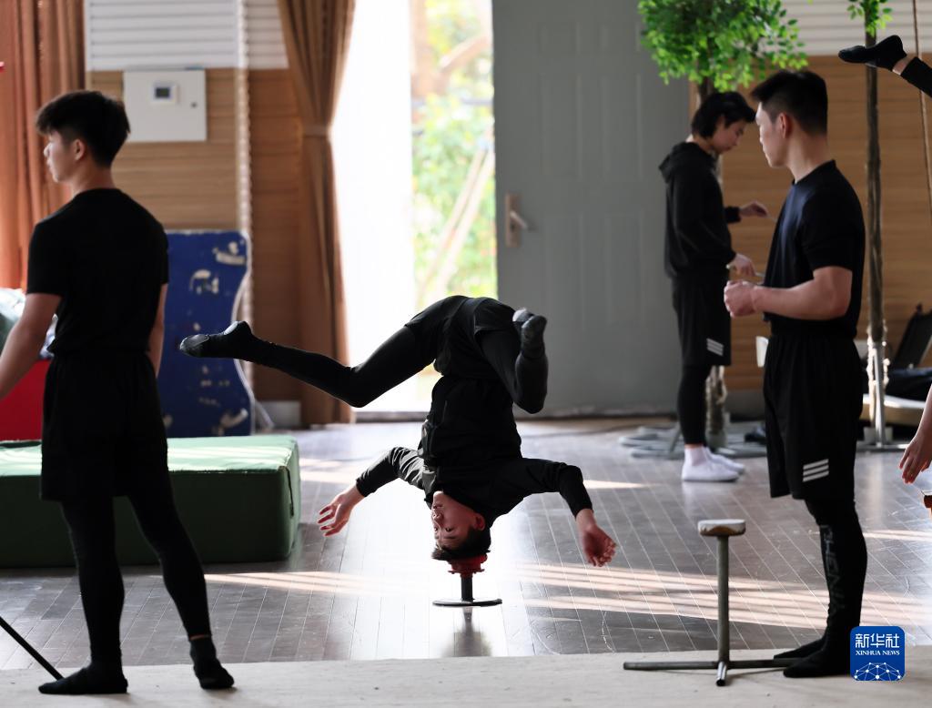 3月31日,演員們在位于江蘇省鹽城市建湖縣的江蘇省雜技團訓練。