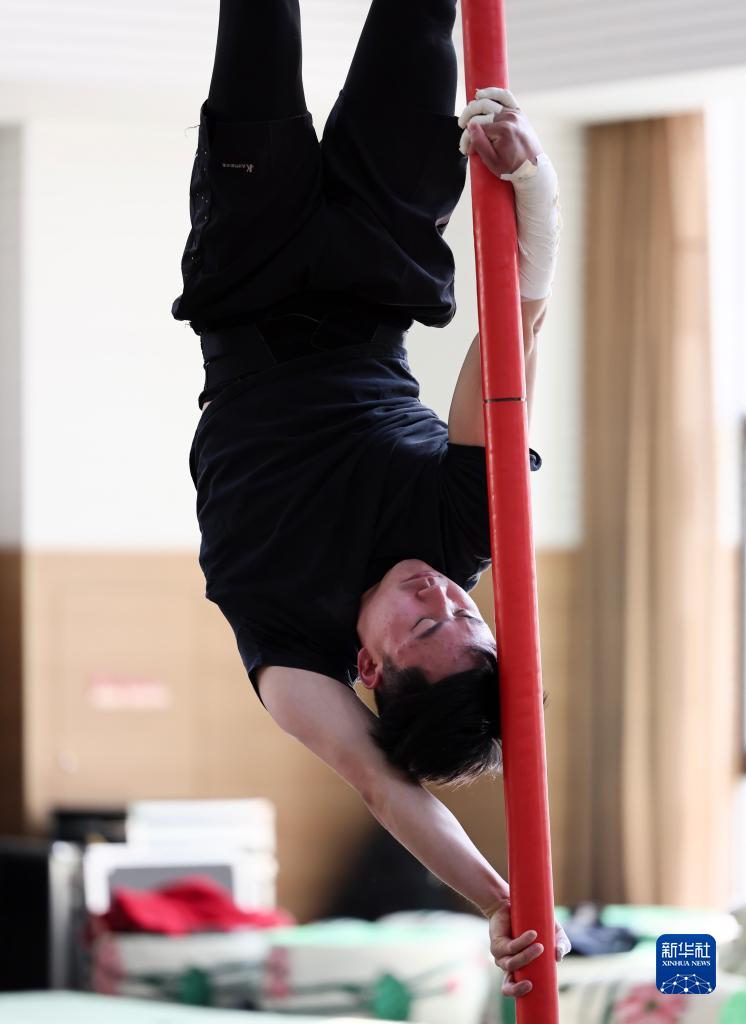 3月31日,演員在位于江蘇省鹽城市建湖縣的江蘇省雜技團訓練。