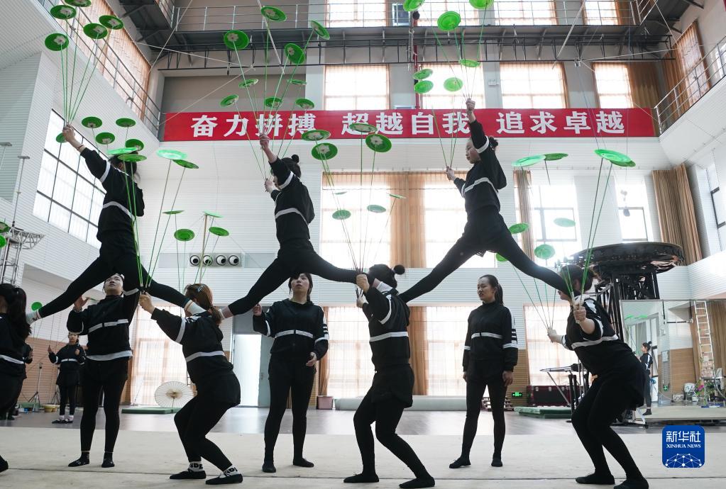 3月31日,演員在位于江蘇省鹽城市建湖縣的江蘇省雜技團訓練。