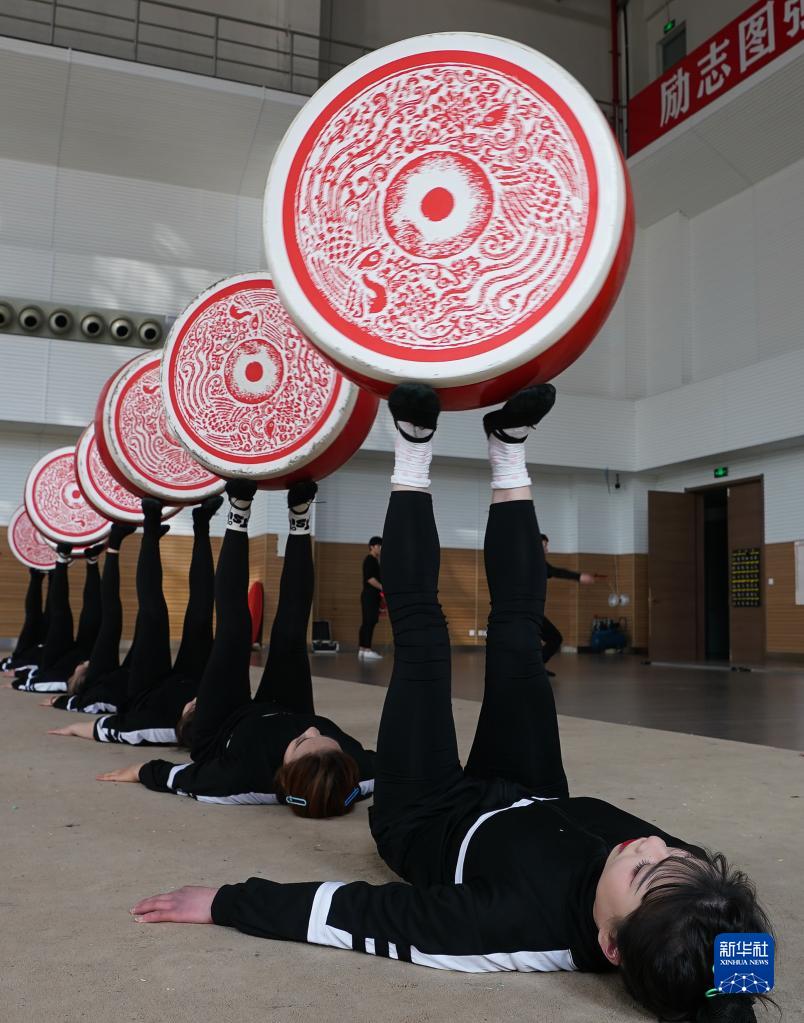 3月31日,演員在位于江蘇省鹽城市建湖縣的江蘇省雜技團訓練。