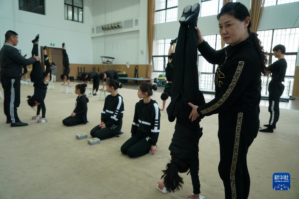 3月31日,演員在位于江蘇省鹽城市建湖縣的江蘇省雜技團訓練。