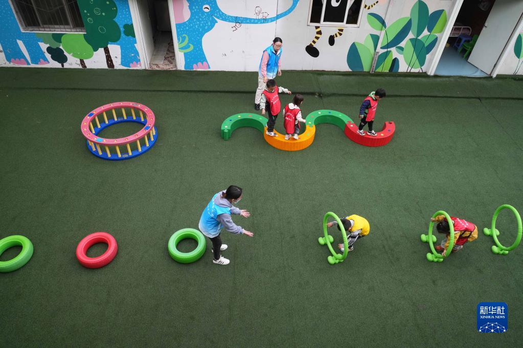 3月31日,在重慶市北碚區奔月鐵路幼兒園康教中心,特教老師幫助孤獨癥兒童進(jìn)行感統訓練。