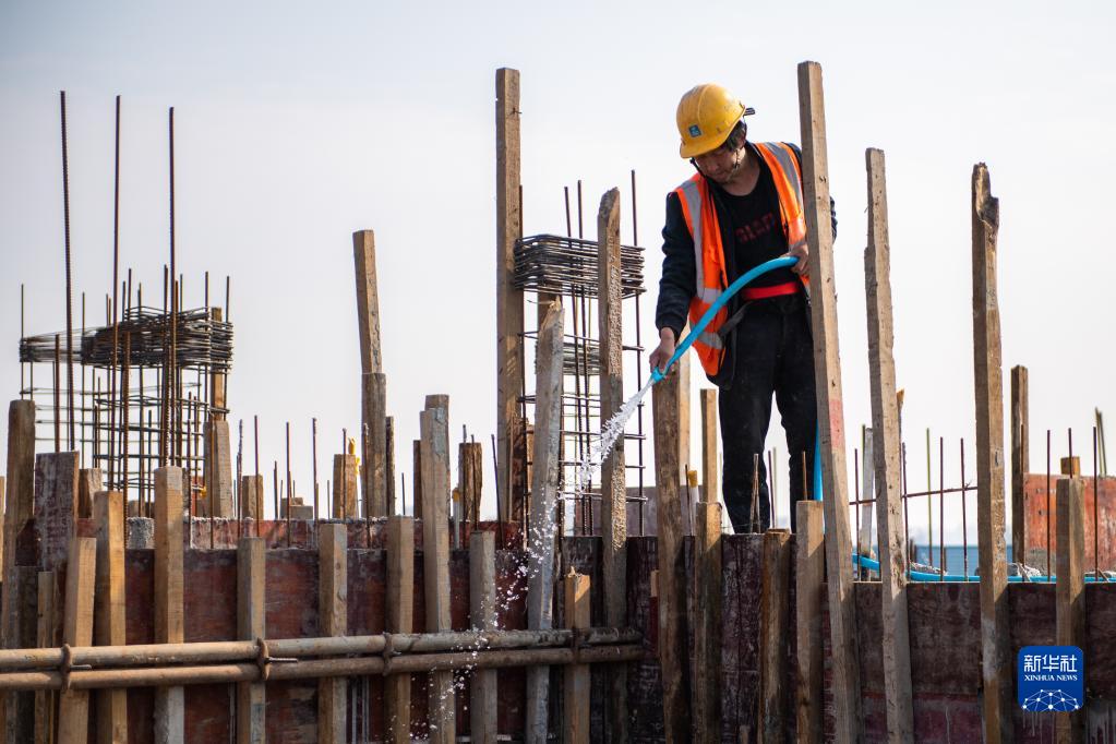 4月1日,在長(cháng)沙岳麓山實(shí)驗室集聚區農大片區項目建設現場(chǎng),工人在進(jìn)行封頂施工作業(yè)。