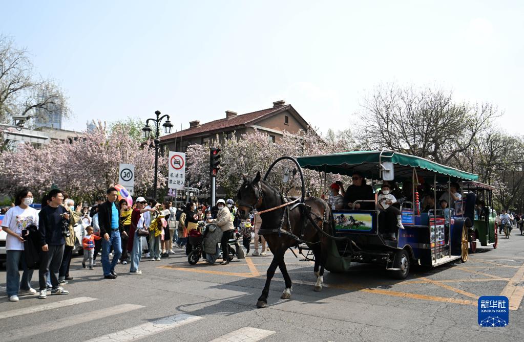 連日來(lái),天津市五大道風(fēng)景區內海棠花盛開(kāi),景色綿延上千米,成為春日里的“網(wǎng)紅打卡地”。為進(jìn)一步激活文旅消費市場(chǎng),天津市和平區于3月31日至4月9日舉辦“津遇和平·海棠花”系列活動(dòng),以花為媒促進(jìn)文旅商融合,在景區內舉行了花車(chē)巡游、海棠文創(chuàng )市集、主題燈光秀等豐富多彩的活動(dòng),讓市民游客“游”出新“花”樣,“春日經(jīng)濟”綻放出新活力。