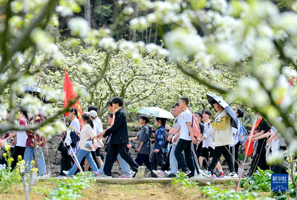 清明臨近,湖北省恩施土家族苗族自治州宣恩縣特色水果黃金梨進(jìn)入盛花期,吸引眾多游客進(jìn)園觀(guān)光游玩。近幾年,當地依托黃金梨資源,開(kāi)展研學(xué)游、賞花游、采摘體驗游等農旅融合活動(dòng),帶動(dòng)鄉村民宿、農家樂(lè )等產(chǎn)業(yè)的發(fā)展,為鄉村振興注入了新的活力。