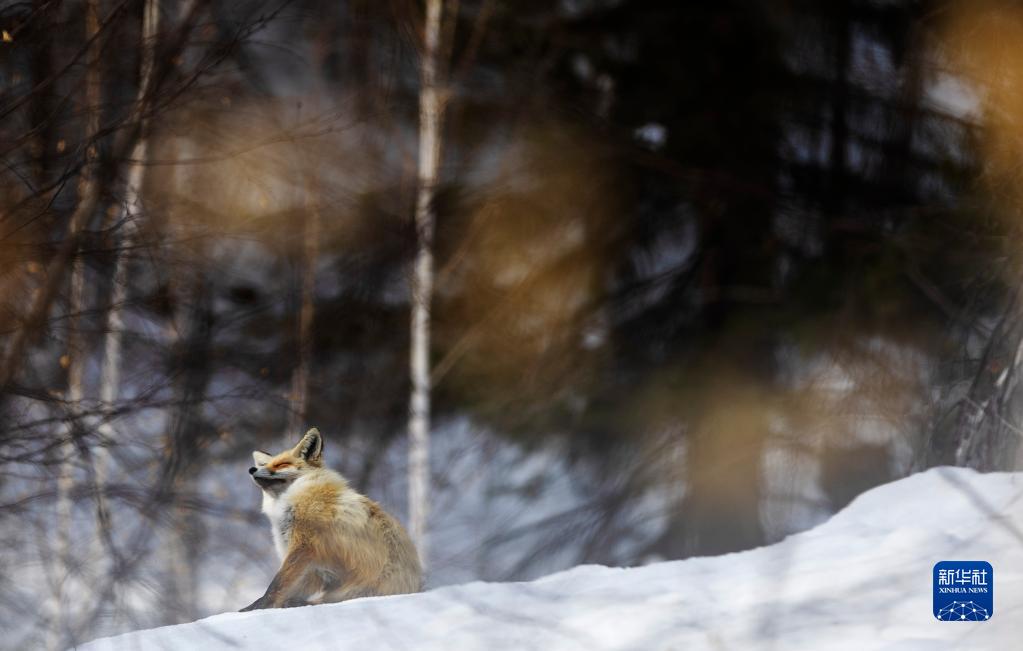 3月29日,一只赤狐在喀納斯風(fēng)景區休憩。