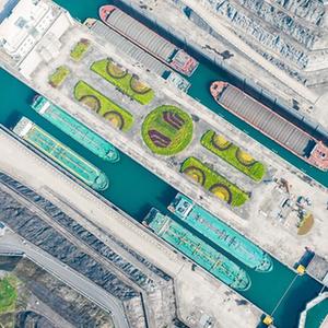 4月1日,船舶有序通過(guò)三峽雙線(xiàn)五級船閘(無(wú)人機照片)。