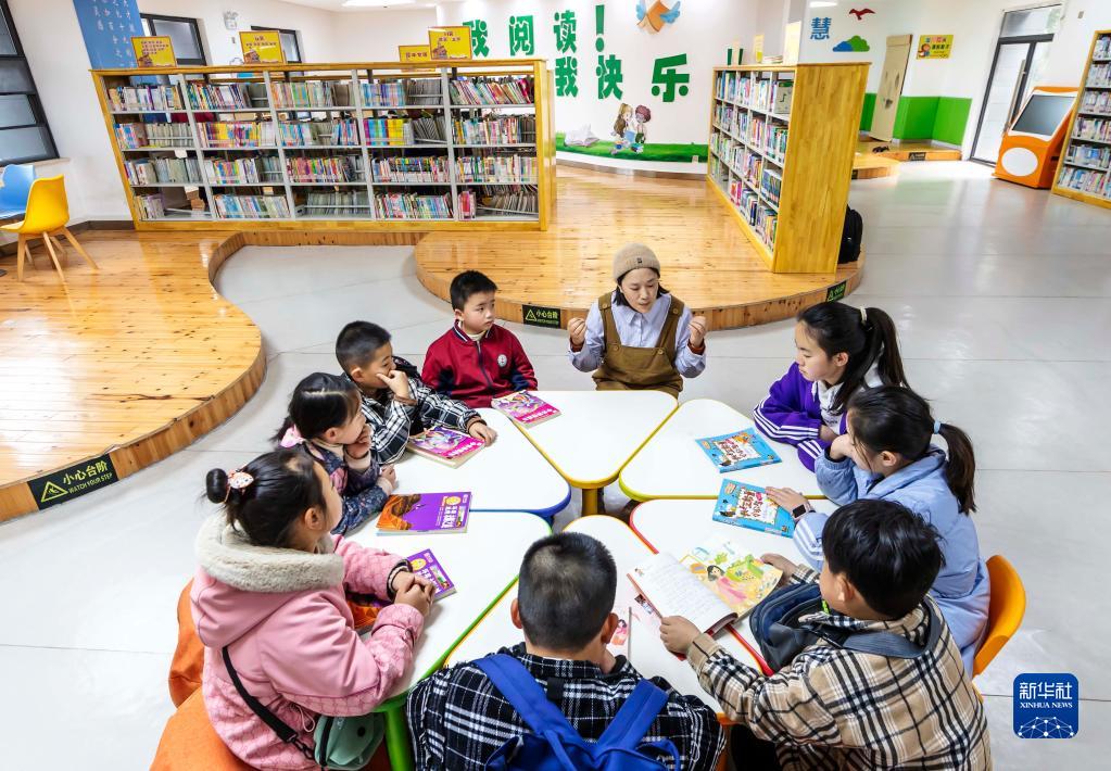 4月1日,圖書(shū)館工作人員在貴州省黔西市圖書(shū)館少兒閱覽室開(kāi)展閱讀公益課。