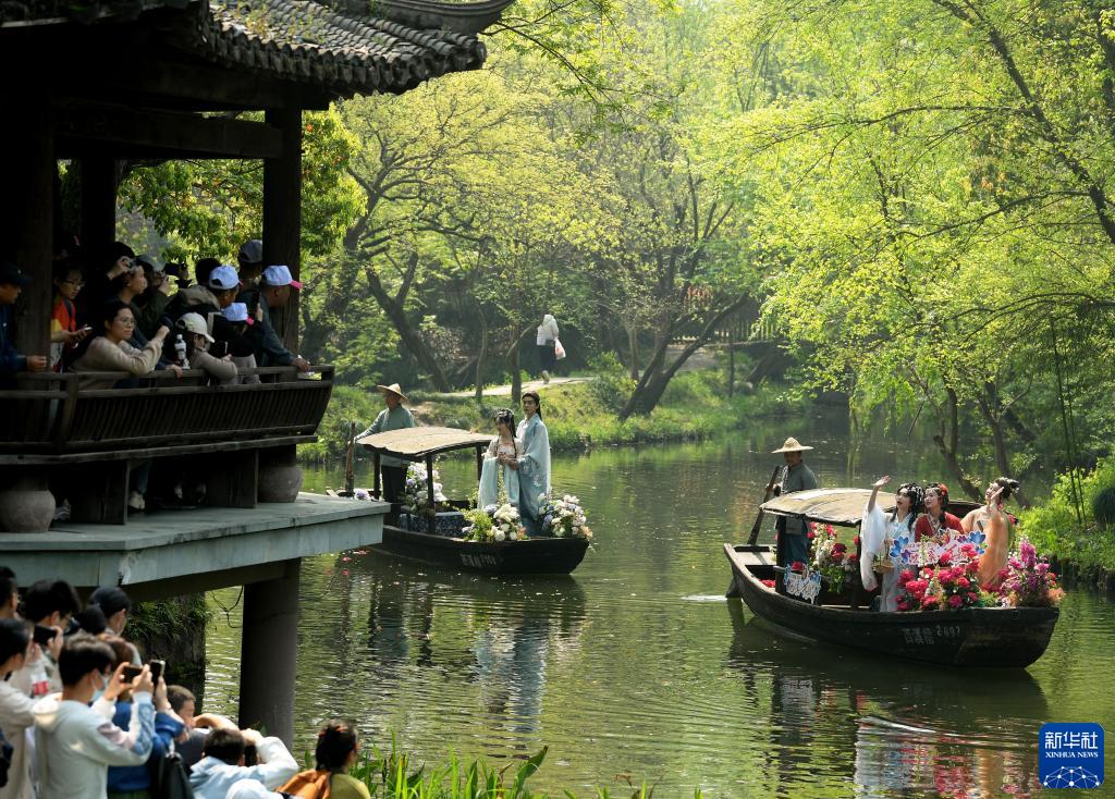 4月2日,游客在西溪濕地觀(guān)賞宋韻花朝節表演。
