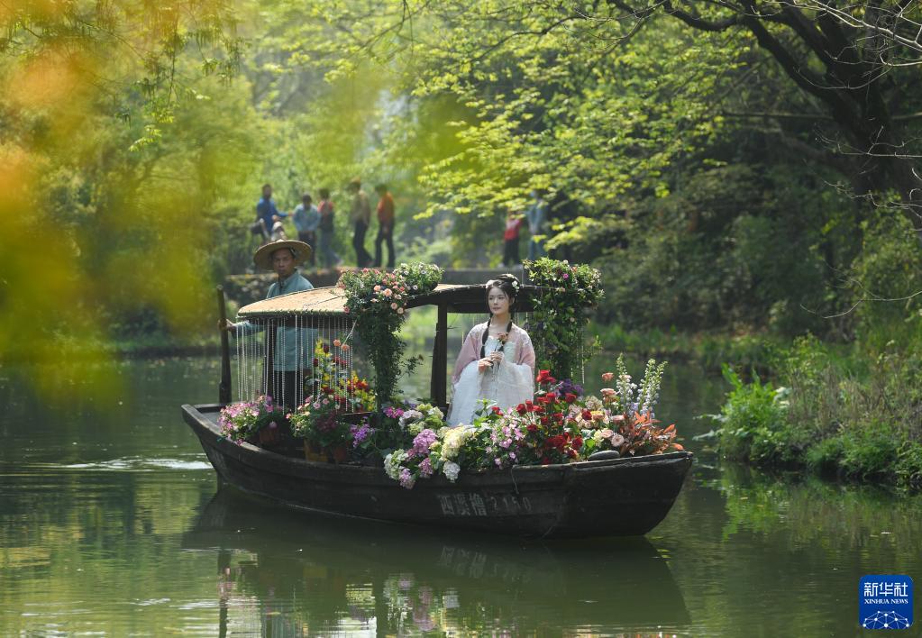 近日,浙江省杭州市西溪濕地春光明媚,吸引游客前來(lái)踏青休閑。