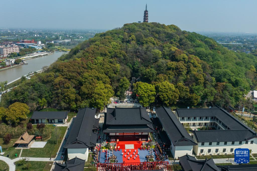 4月2日拍攝的含山蠶花節“祭蠶神”民俗表演(無(wú)人機照片)。