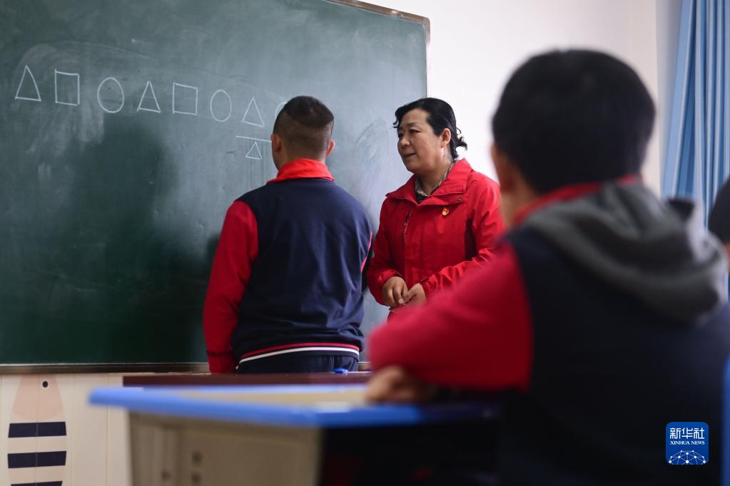 3月30日,在青海省西寧市星光特殊兒童服務(wù)中心,陳志芳(中)給孤獨癥兒童做認知訓練。