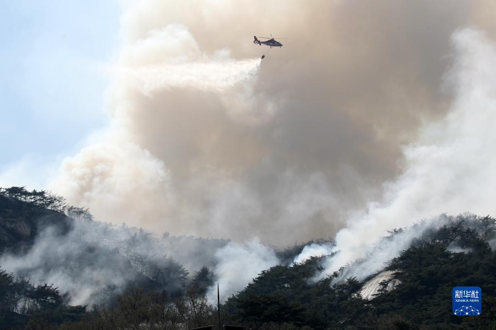 4月2日,直升機在韓國首爾市仁王山上空滅火。