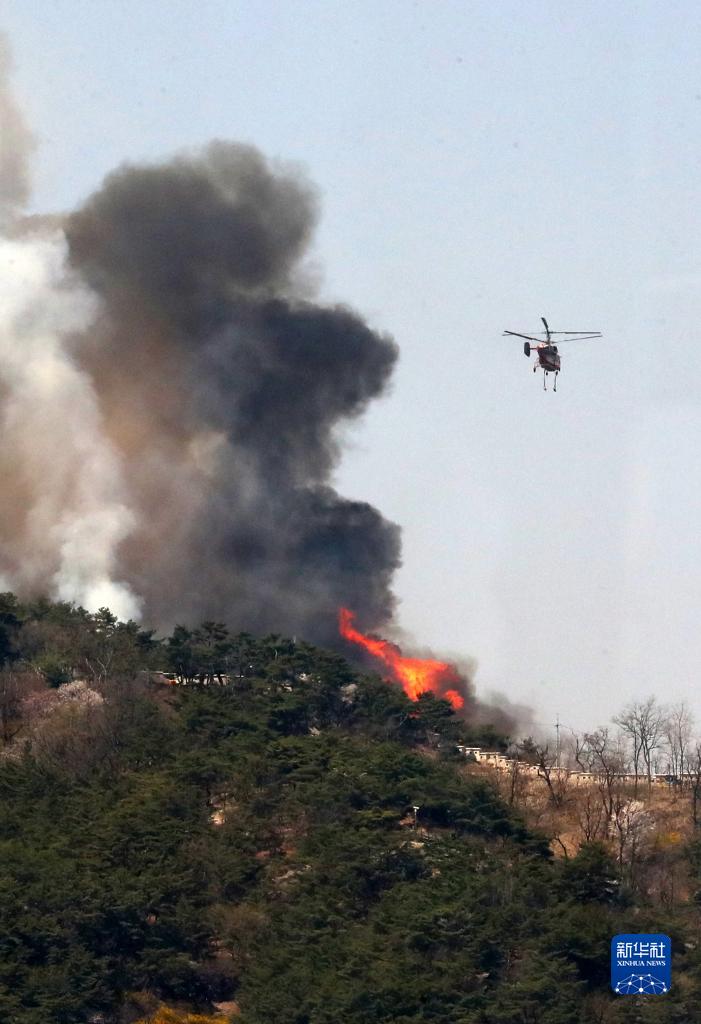 4月2日,直升機在韓國首爾市仁王山上空執行滅火作業(yè)。