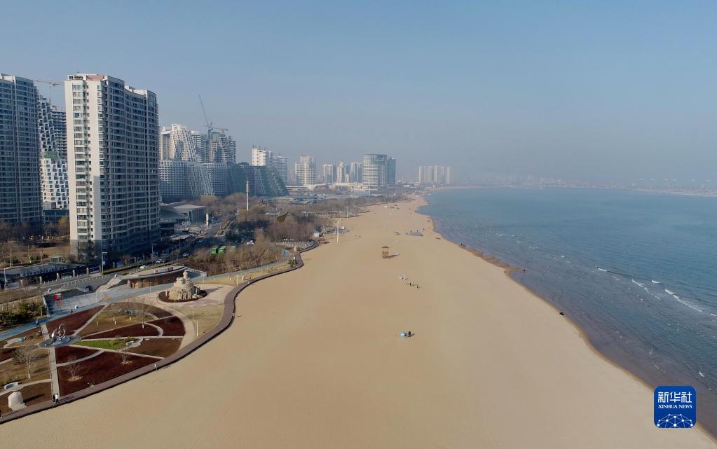 4月1日,游客在秦皇島市海港區金夢(mèng)海灣游覽(無(wú)人機照片)。