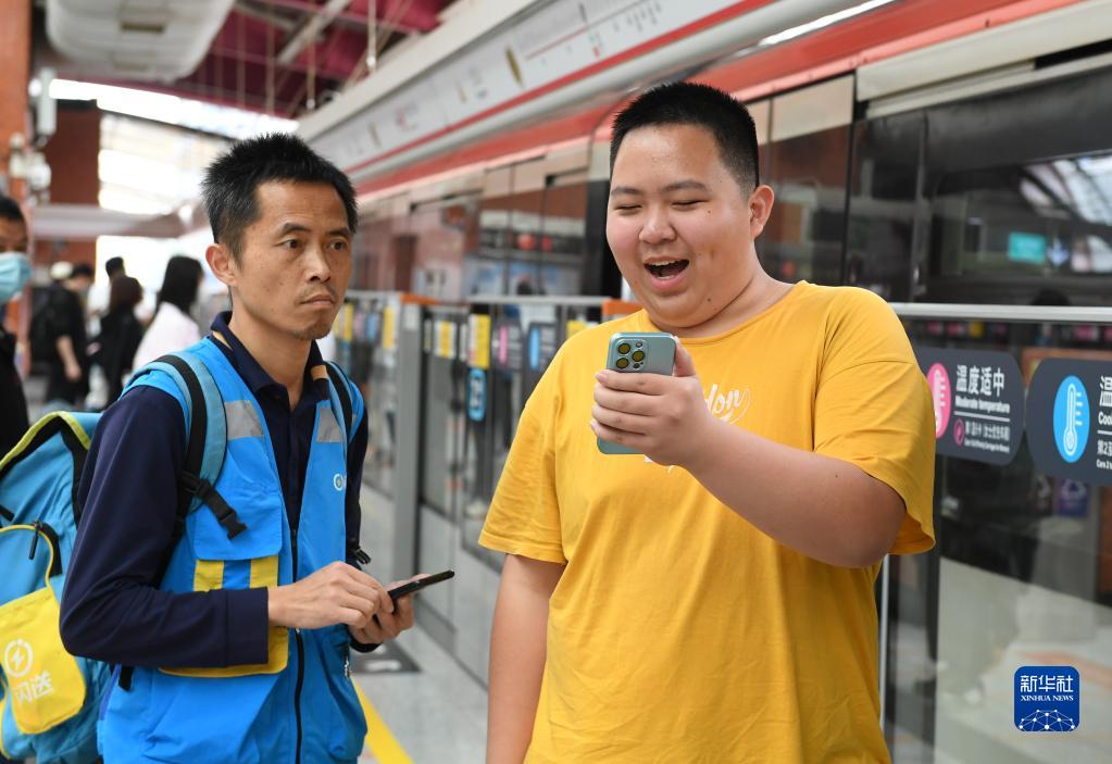 黃志能2歲時(shí)確診孤獨癥,出于讓他多接觸外面世界的想法,黃少禮跑單送貨時(shí)都會(huì )帶著(zhù)他。父子倆每日背著(zhù)包穿梭在城市的大街小巷里,搶單、送貨。黃志能方向感很強,找路、換車(chē)十分熟悉,比父親還快?!八X子里有個(gè)地圖,去哪里都找得到?!秉S少禮說(shuō),“送單時(shí),他情緒很好,跟客人都能正常溝通。我希望每天能多接單,讓他的情緒保持平穩,將來(lái)能夠獨立生活”。
