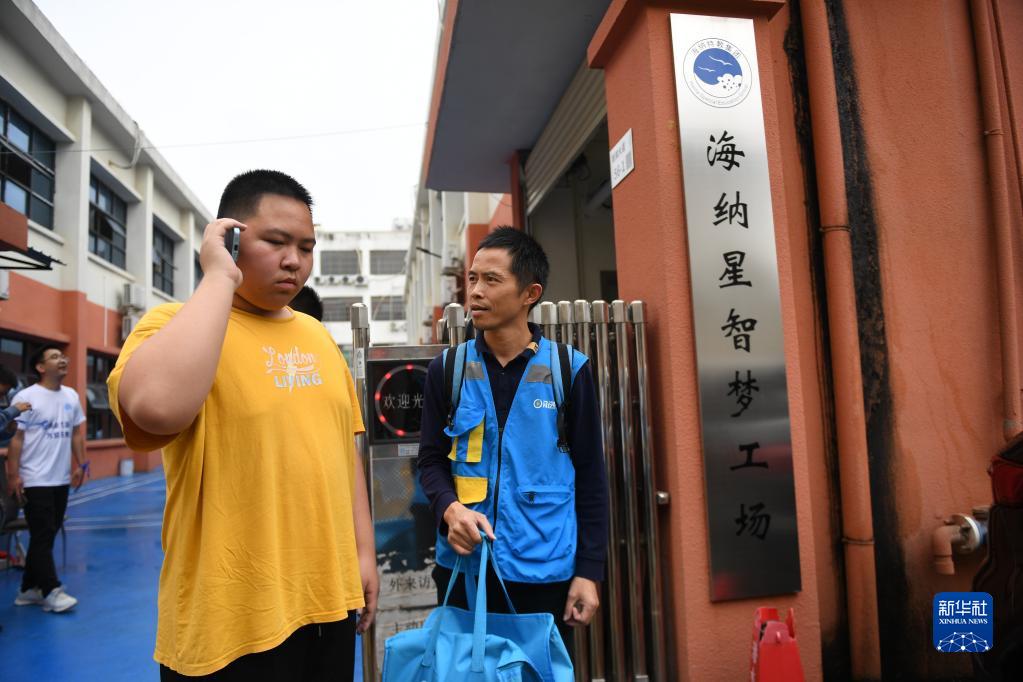 4月2日,黃志能(左)陪著(zhù)爸爸黃少禮去送單。由于訂貨人是黃志能所在康復機構的老師,到達目的地后,父親讓黃志能幫忙打電話(huà)聯(lián)系。