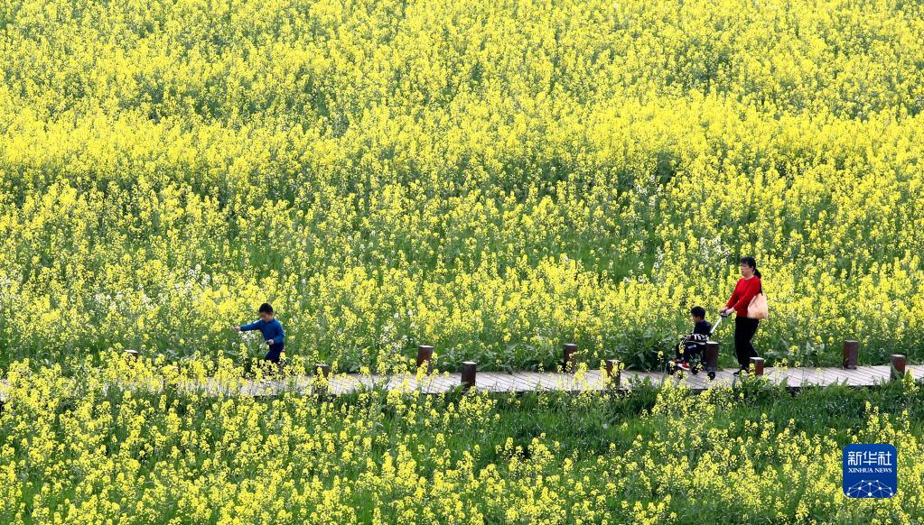 4月1日,游客在江蘇省蘇州市吳江區同里鎮北聯(lián)村油菜花海中賞花游玩。
