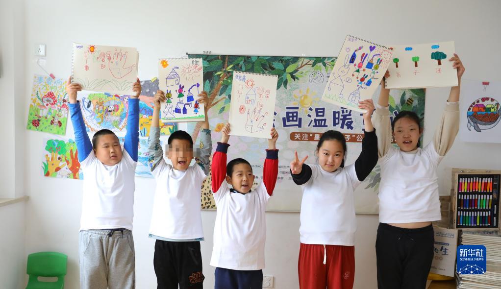 4月2日,在關(guān)注“星星的孩子”公益捐助活動(dòng)上,幾名孤獨癥兒童展示畫(huà)作。