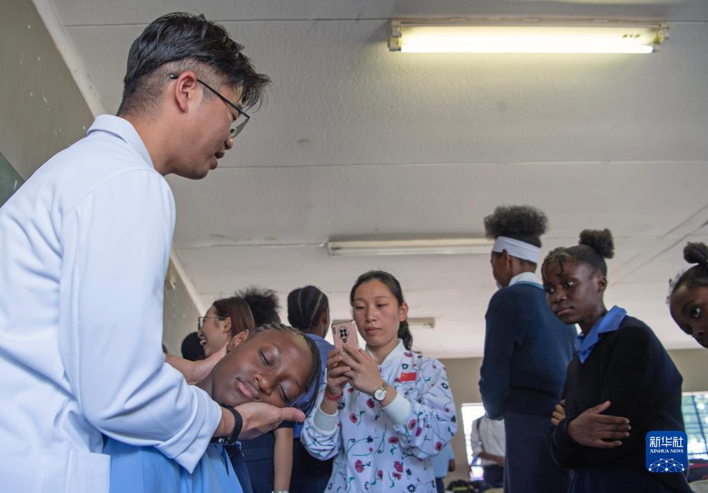 當日,第15批中國援納米比亞醫療隊隊員在伊曼紐爾·謝菲迪中學(xué)為50多名學(xué)生帶來(lái)一堂別開(kāi)生面的中文課。他們用針灸、火罐作教具,以傳統中醫文化為內容,讓同學(xué)們在寓教于樂(lè )的沉浸式體驗中學(xué)習中文。