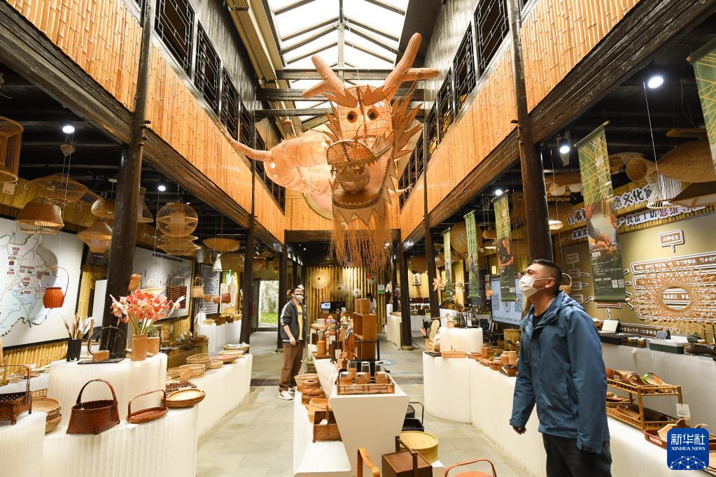 4月3日,老街的游客在姜鵬工作室的展廳參觀(guān)選購。新華社記者 翁忻旸 攝