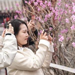4月4日,游客在沈陽(yáng)故宮賞花。