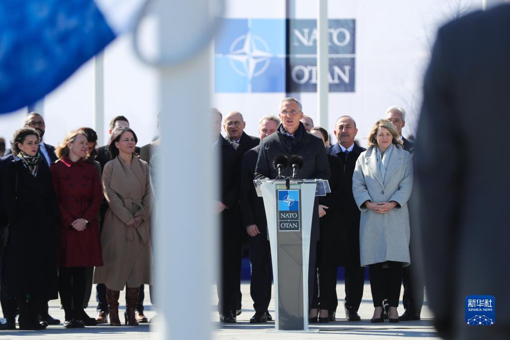 4月4日,在比利時(shí)布魯塞爾的北約總部,北約秘書(shū)長(cháng)斯托爾滕貝格在芬蘭加入北約儀式上發(fā)言。
