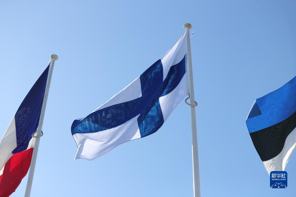 4月4日,芬蘭國旗在比利時(shí)布魯塞爾的北約總部飄揚。