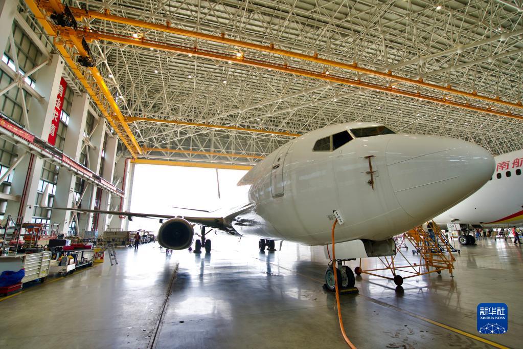 3月31日,在海南自貿港一站式飛機維修產(chǎn)業(yè)基地內,進(jìn)境飛機接受飛機發(fā)動(dòng)機、應急設備等多項檢修項目。