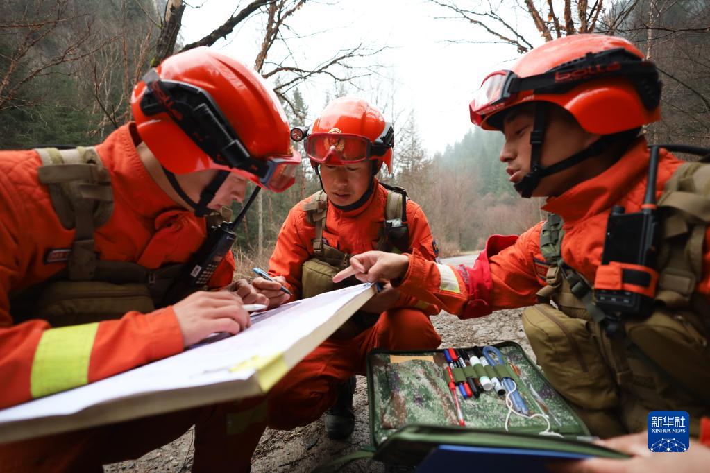 4月4日,在甘肅連城國家級自然保護區內的吐魯溝國家森林公園,連城駐防分隊的指戰員們在巡護執勤時(shí)觀(guān)察地形。
