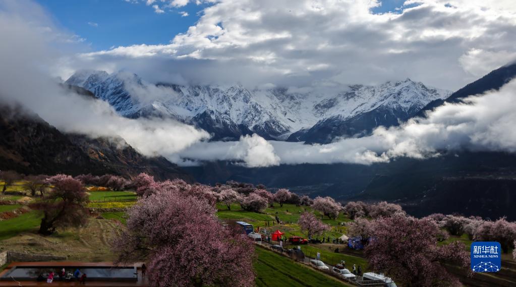清明時(shí)節,西藏米林市派鎮索松村的桃花進(jìn)入盛放期,吸引游客前來(lái)觀(guān)賞、拍攝。