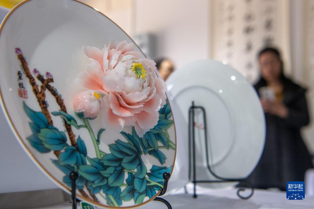 4月6日,游客在展廳參觀(guān)牡丹周邊產(chǎn)品。