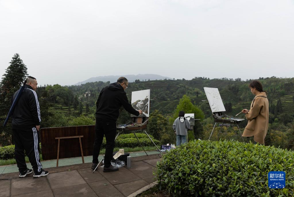 4月6日,幾名繪畫(huà)愛(ài)好者來(lái)到青杠坪村茶園里寫(xiě)生。