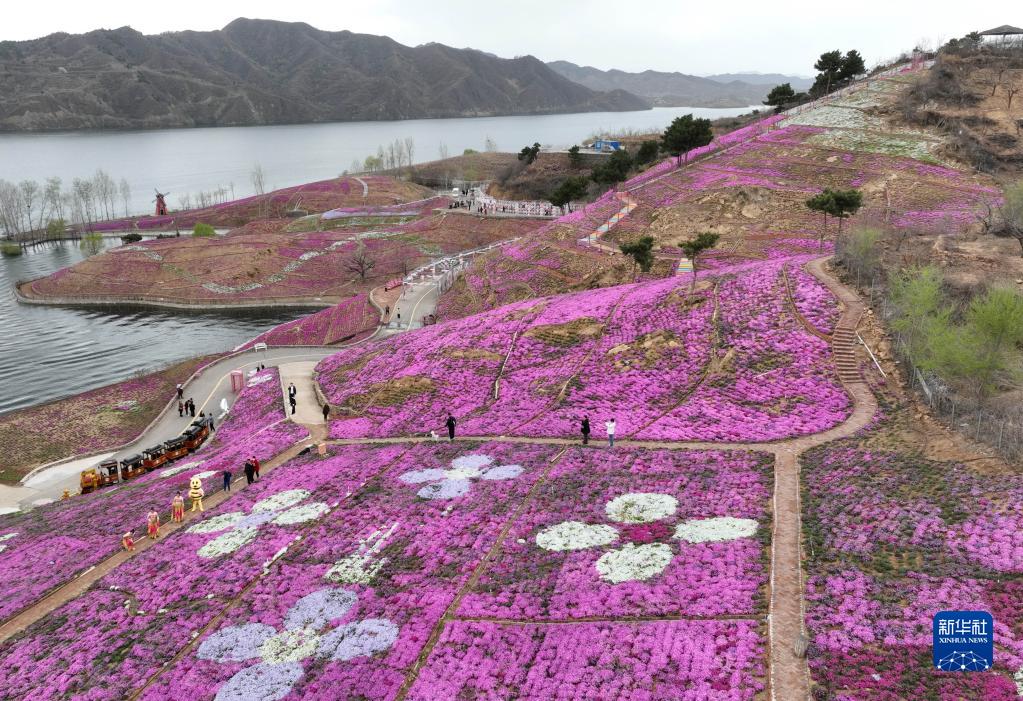 近日,河北省遷西縣舊城鄉北孫家峪村大黑汀水庫東岸500多畝芝櫻競相綻放,吸引游客前來(lái)賞花游玩。