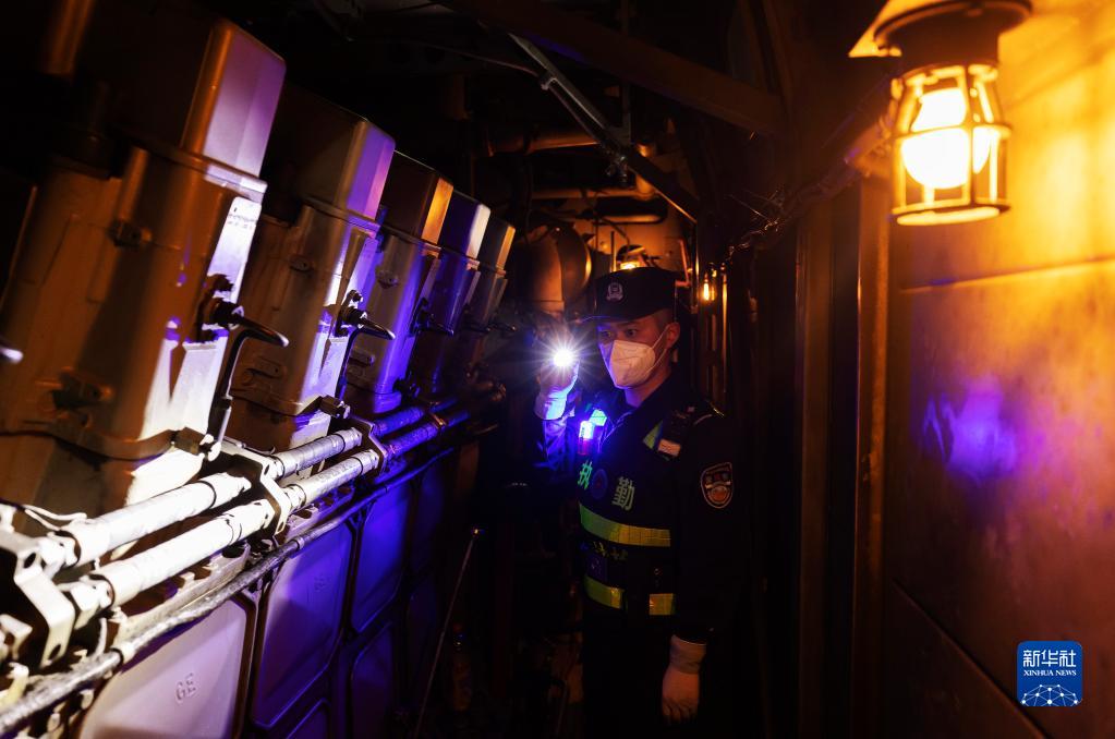 4月4日凌晨,崔洪武在車(chē)頭進(jìn)行查緝工作。新華社記者 費茂華 攝
