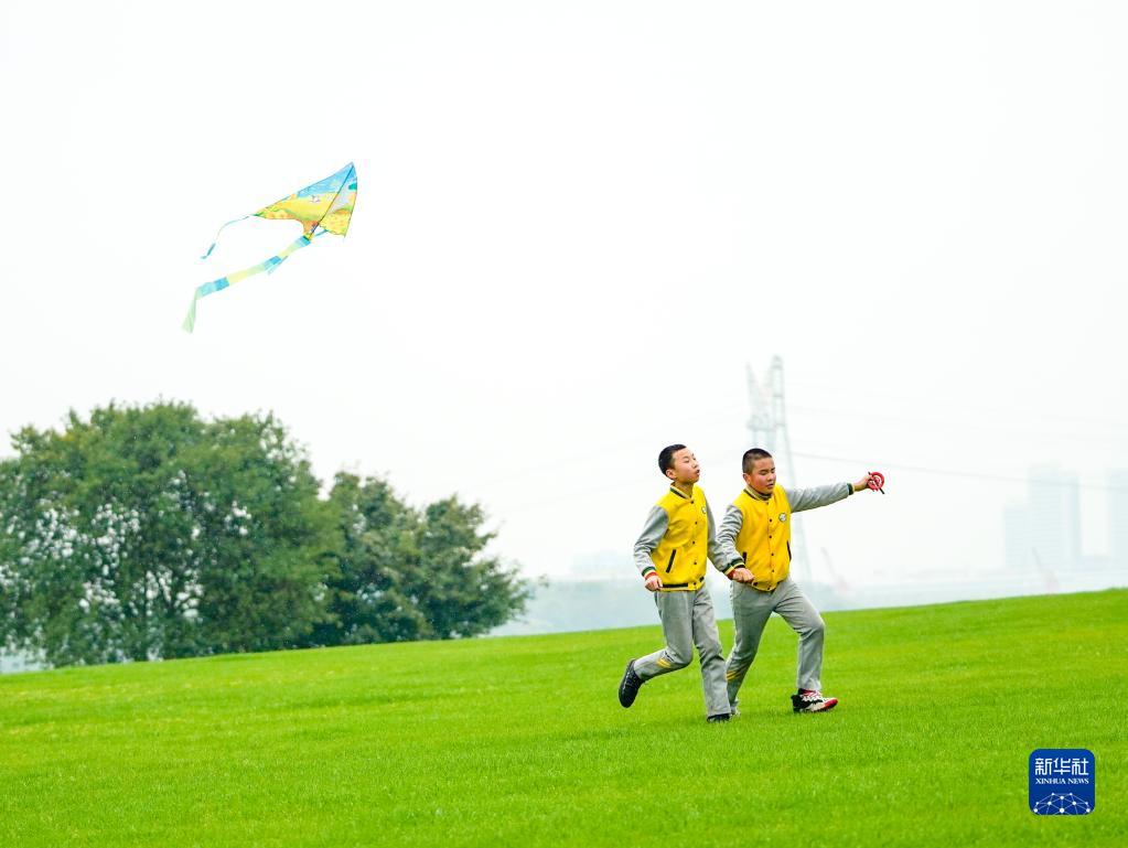 3月31日,重慶廣陽(yáng)島的一片草地上,兩名重慶市特殊教育中心視力障礙學(xué)生牽著(zhù)手放風(fēng)箏。
