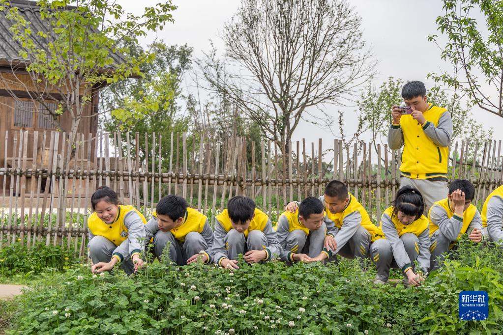 3月31日,在重慶廣陽(yáng)島,重慶市特殊教育中心的視力障礙學(xué)生輕輕觸摸植物綠葉,感受春的氣息。