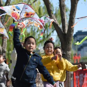 4月7日,小朋友在北京陶然亭公園放風(fēng)箏。