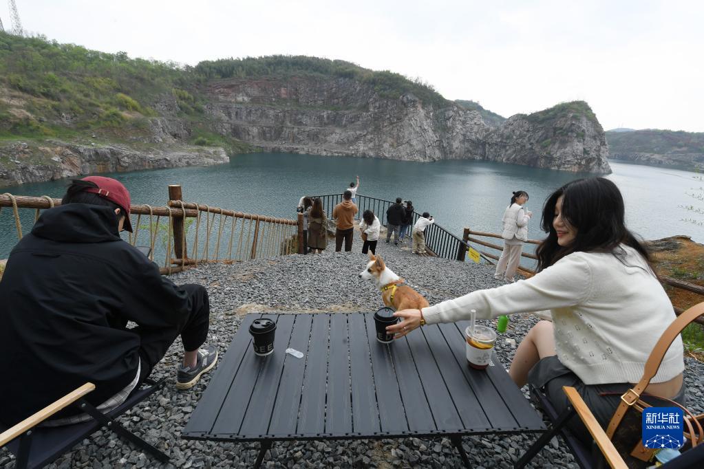 4月7日,游客在安吉縣梅溪鎮紅廟村一咖啡館休閑。