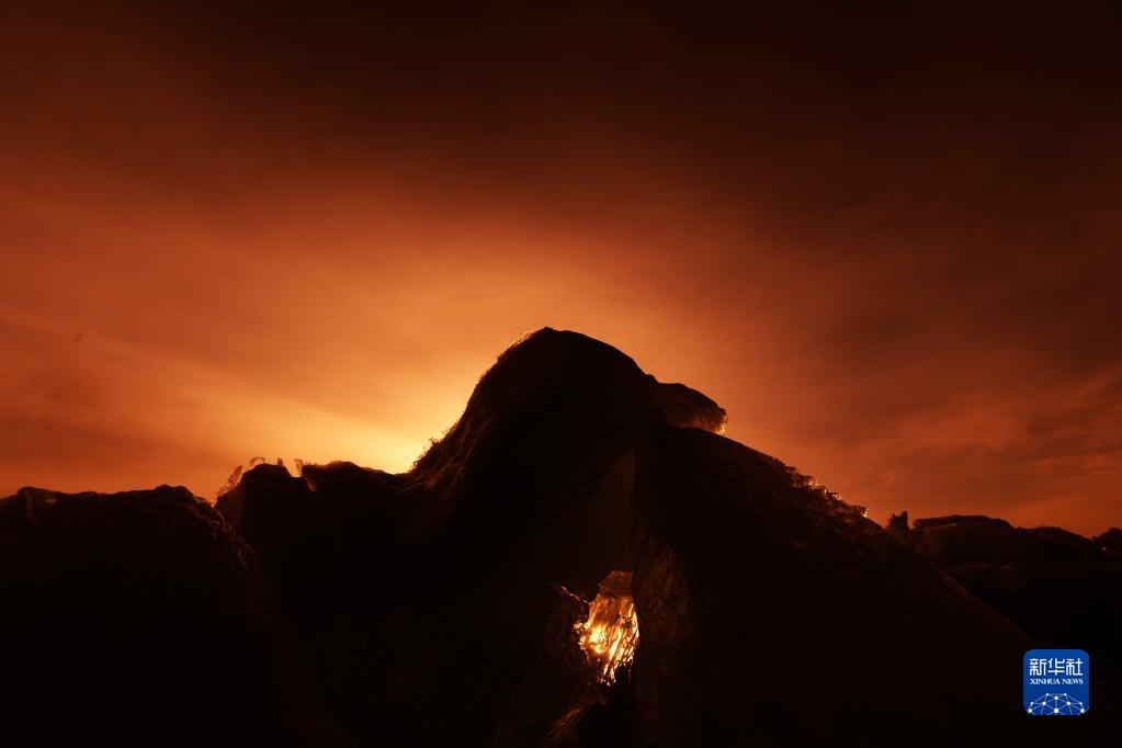 4月6日,賽里木湖畔的冰推在夕陽(yáng)下散發(fā)著(zhù)光芒。