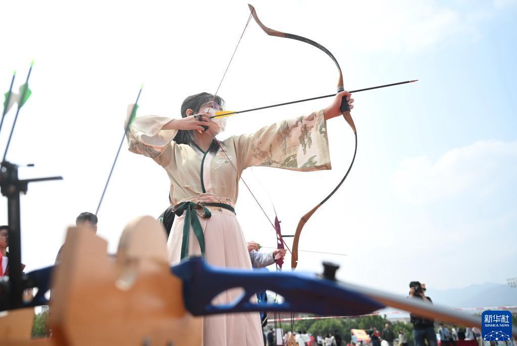 4月8日,學(xué)生在福州大學(xué)城“優(yōu)秀傳統文化進(jìn)校園”開(kāi)幕式上體驗射箭。